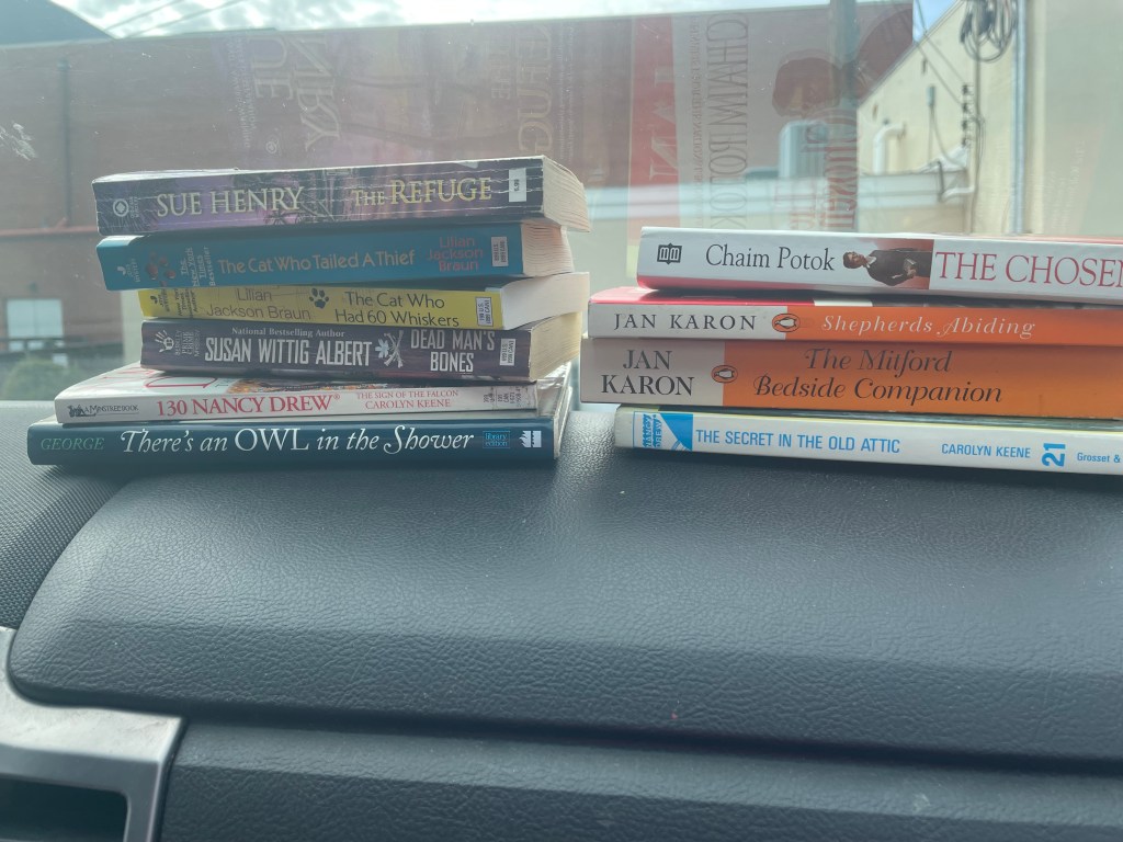 They were both Jan Karon books. One of them is a paperback version of a huge hardback collection I own, and I thought it would be nice to have a “lighter” version of that one.