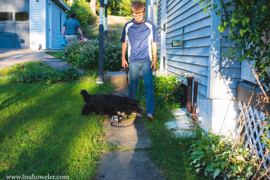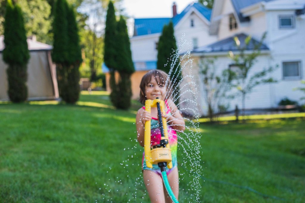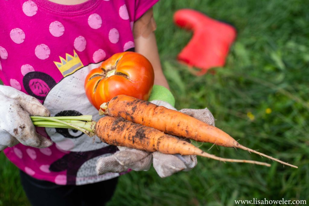We had two days in the mid-80s and during one of them I pulled the sprinkler out for my daughter while my son went on a camping trip at my parents’ with my dad and a friend. My daughter and I also pulled some carrots and tomatoes out of my slowly dying garden. This summer has been hot and dry for the most part and our gardens and backyards are showing the damage.