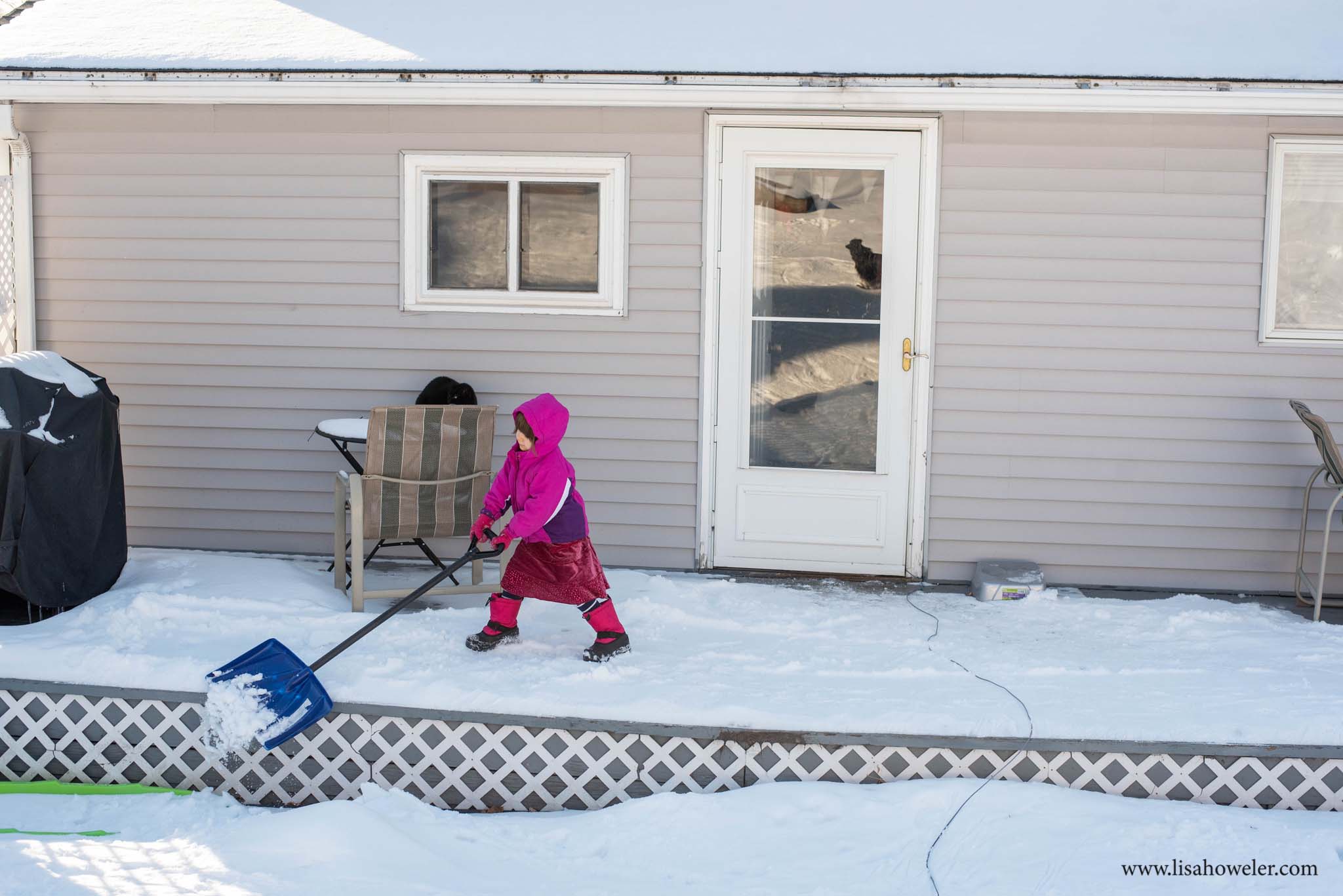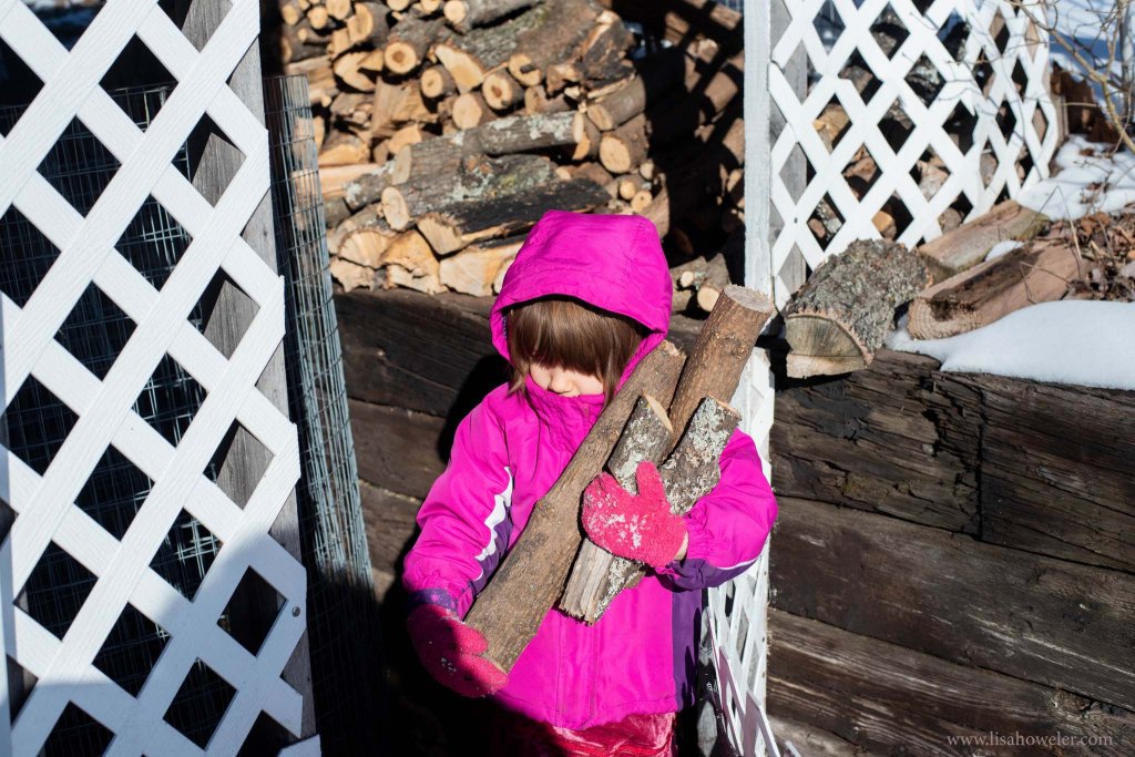 Saturday I was sitting on the couch, depressed after my dad dumped a bunch of political stress on me (I’ve been doing a very good job avoiding all of that in the last week or so), so I decided to get off my computer and go find some life outside the house (even if I can’t pull our van out of the driveway right now.) My daughter and I braver the cold to some kindling for the fire in the woodpile.