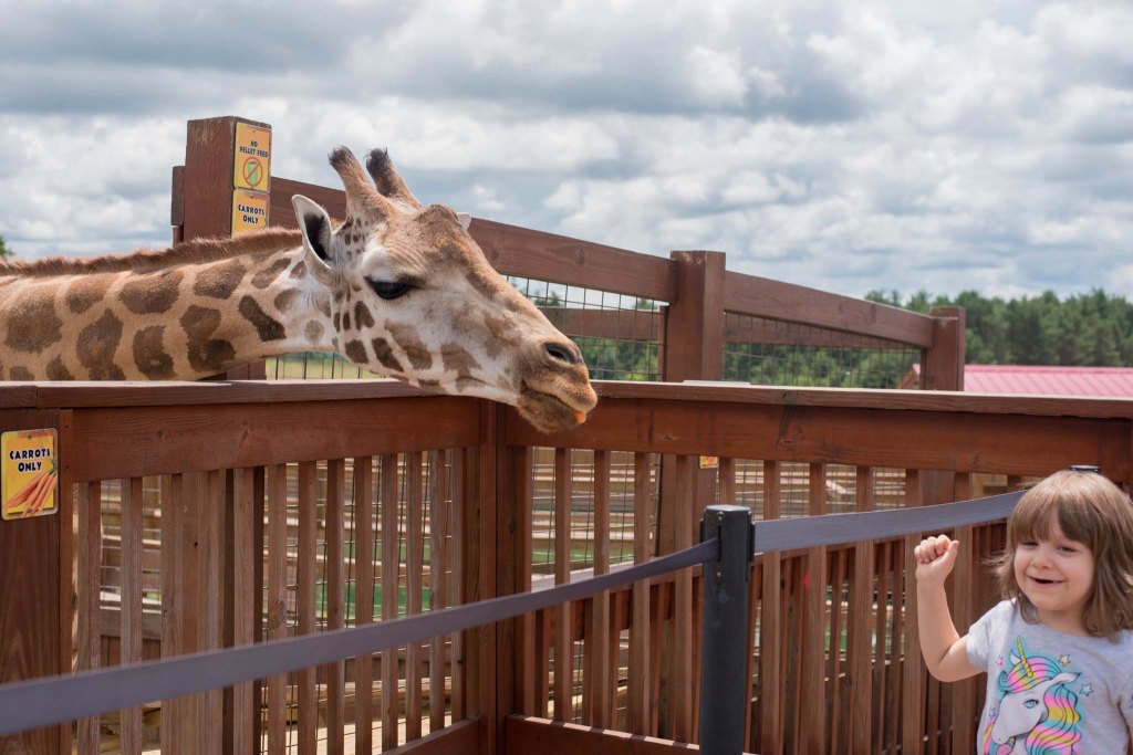 It’s been two years since we’ve been at the adventure park, so my daughter had forgot a lot about what they had to offer, but she had a blast. She’s an animal enthusiast so she liked to talk to the animals while she fed them. She was most fascinated with the goats, which I found odd since we can see goats just about anywhere around us. We do not, however, see African lions, African penguins, giraffes, and monkeys around our home. I am most fascinated with the giraffes because they are so friendly and tall. We’re not allowed to pet them but people are allowed to feed them carrots. It is very hard not to pet them when they reach up over the fence with their large heads.
