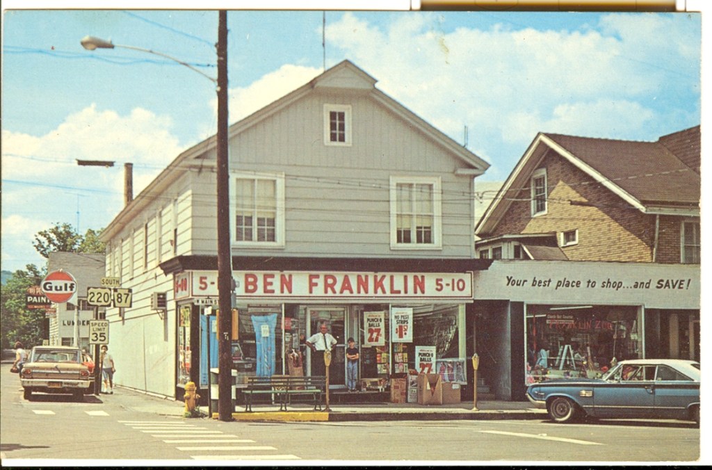 Many years ago, though, it was the local Ben Franklin, owned by a Mr. Sick. Ben Franklin stores were a chain of five and dime stores. There was also one in Towanda, the town I mentioned before that we traveled to for groceries, shoes and clothing shopping, etc.