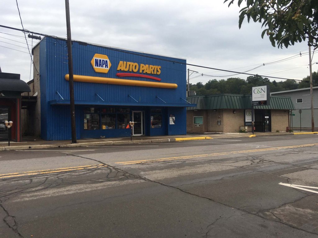 Beyond the NAPA is the CN Bank, or whatever they are calling it today. The name changed recently and will probably change again. Further down is Dushore Beverage, because every town, no matter how small, needs a liquor store.