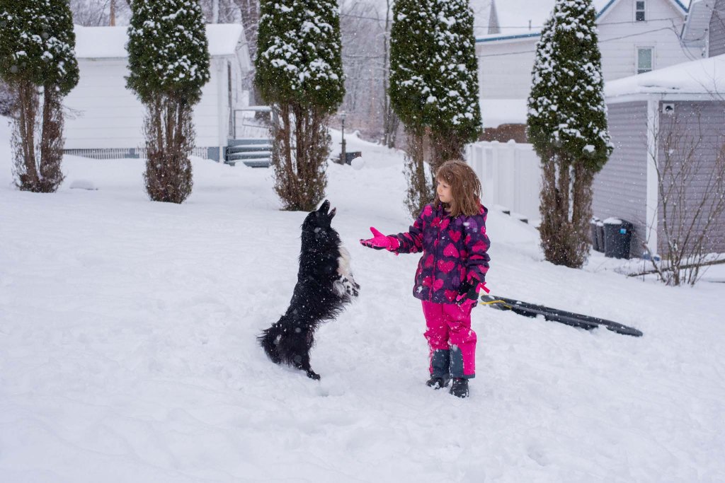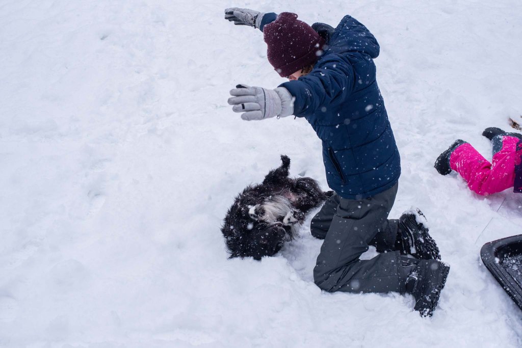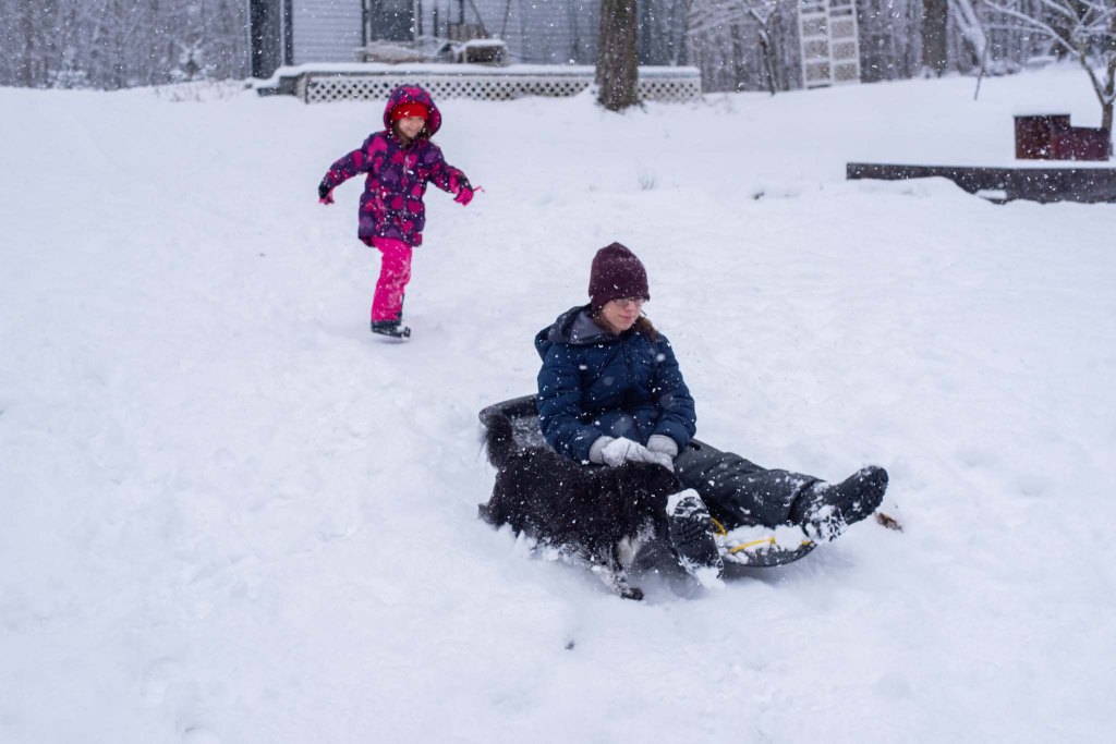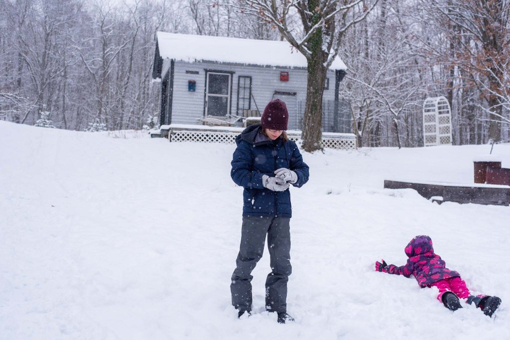 On Thursday we were hit with snow and the youngest was excited to go out and play in it. The pets enjoyed it for a while but eventually decided they’d had enough too. Now, though, the cats are pacing inside by the back door because they think they want to go outside. We are refusing to let them go, of course, because I don’t want to pry their poor frozen bodies off the back porch. They have been chasing each other today to get out the energy — wait, I should say the oldest has been smacking the youngest because she is mean but it looks like play — but later the youngest (Scout) will fall over in front of the wood stove and we will have to check if she is breathing after a few hours.