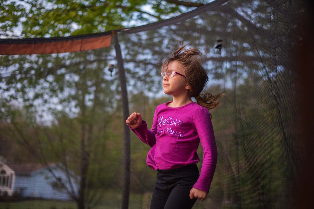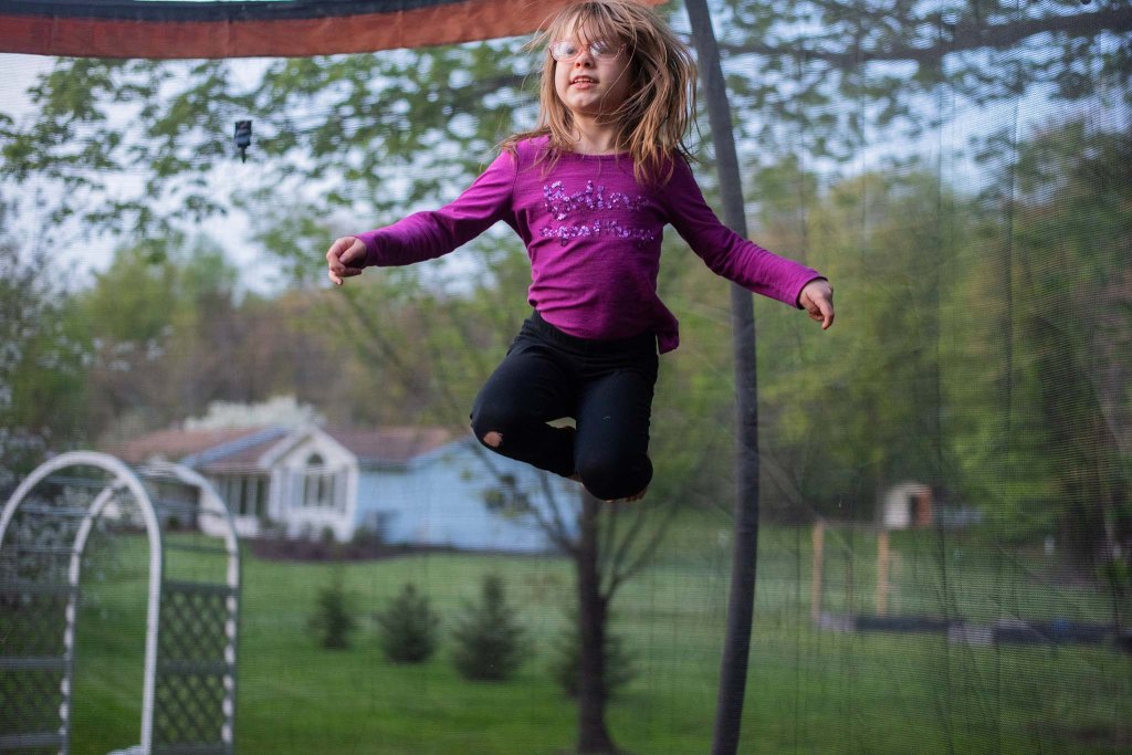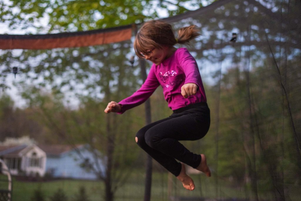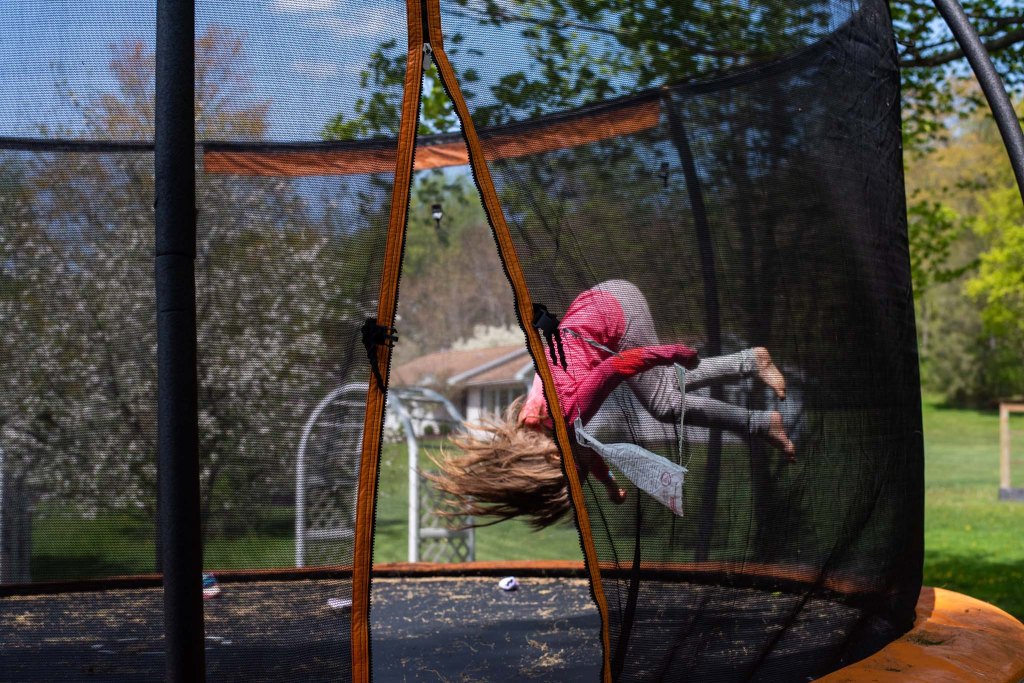 We spent a lot of time on the trampoline at the beginning of May, but not as much toward the end. The heat keeps Little Miss and me inside a lot. I am pretty sure I’ve mentioned this before, but the trampoline actually belongs to the neighbors who are nice enough to put it up for Little Miss to jump on. They put it up this year for when their grandsons visit as well.