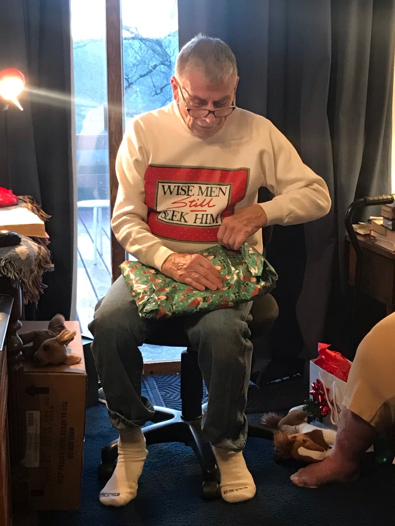 My dad is the gift wrapper. That’s a talent of his.