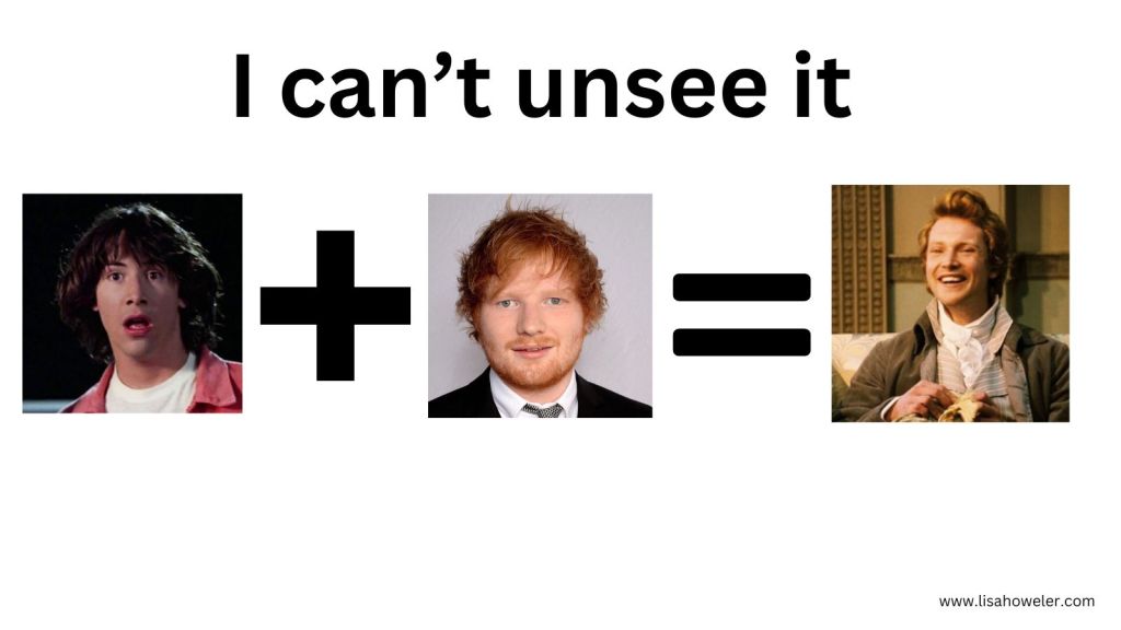 As for the man who plays Mr. Bingley, Sam Woods, I kept cracking up because he was like a cross between Ed Sheeran and Keanu Reeves in Bill and Ted’s Excellent Adventure.