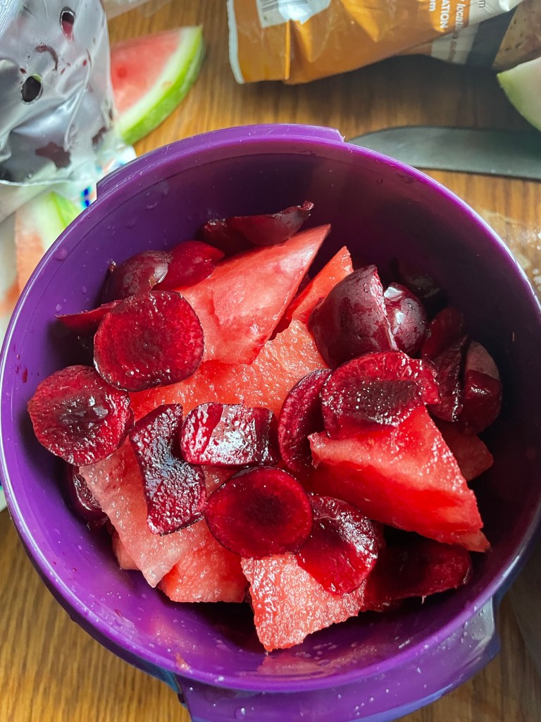 So I spent the afternoon and evening watching simple life YouTubers and reading very light books and cutting up sweet watermelon and cherries for a yummy fruit salad.