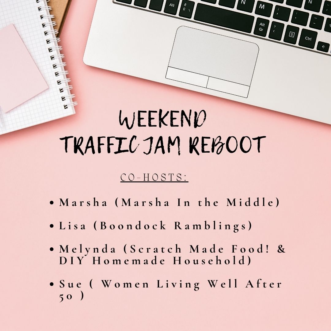 Welcome to another Weekend Traffic Jam Reboot hosted by Marsha in the Middle, Melynda from Scratch Made Food & DYI Homemade Household, Sue from Women Living Well After 50, and me. Look for the link party to go live on Thursdays at 9:30pm EDT.