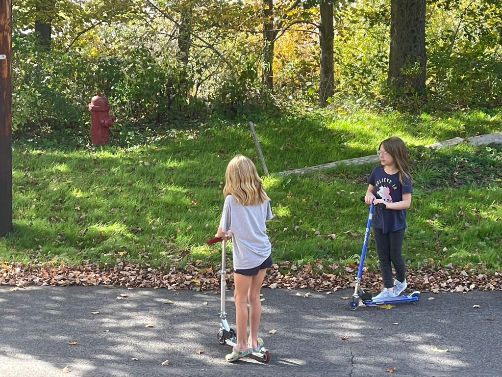 When we got back to the house after skating, I thought the girls might just fall right to sleep. They had spent the entire day playing outside (the trampoline, riding scooters, jumping in leaves, and then two hours of skating). They lasted a little longer and then fell asleep so hard that Little Miss’s friend didn’t even change positions for five hours.