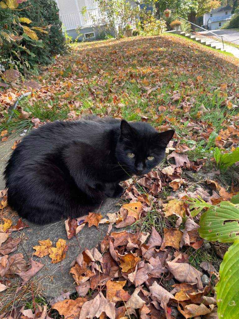 Our cats are fairly aloof all summer but around anywhere from mid-September to the middle of October they will gradually begin to come inside earlier after being outside hunting, lurking, or harassing other neighborhood cats, all day. Once they are inside they will stare at one of the humans for a few second or minutes – usually me – and then pounce – running up onto the body of said human and laying on their stomach or chest, expecting the chosen one to be honored and in awe that they have been chosen.