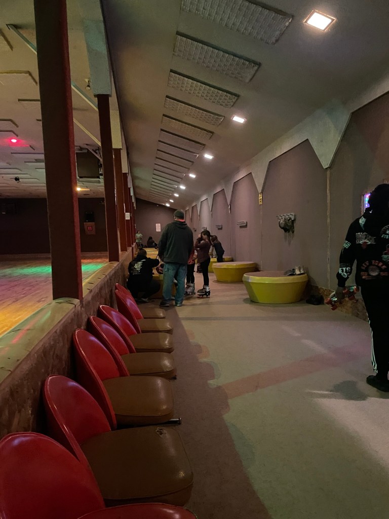 I would definitely say that they have renovated over the years based on how great the skating rink floor looks, but some of it feels the same – the big round table-like seats where you sit to put your skates on, the booths where you can sit to eat, the garbage food they served (microwaved pizza, microwaved nachos and cheese, candy and sodas).