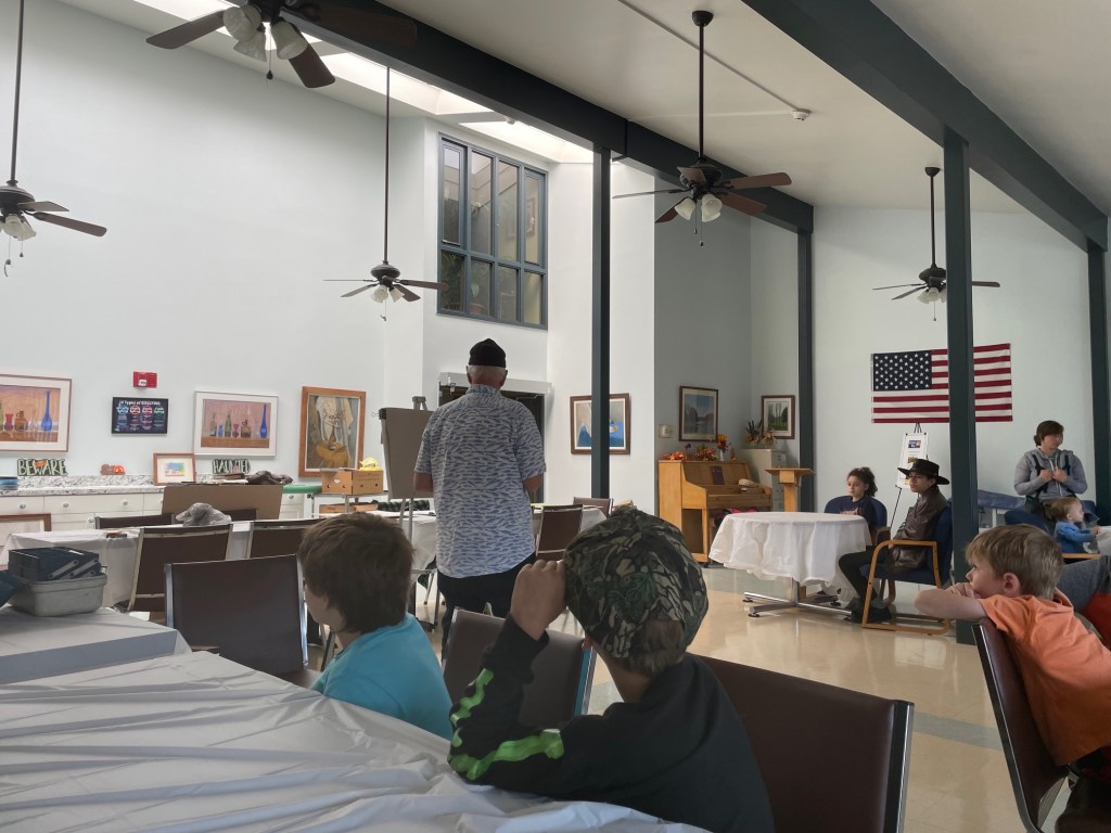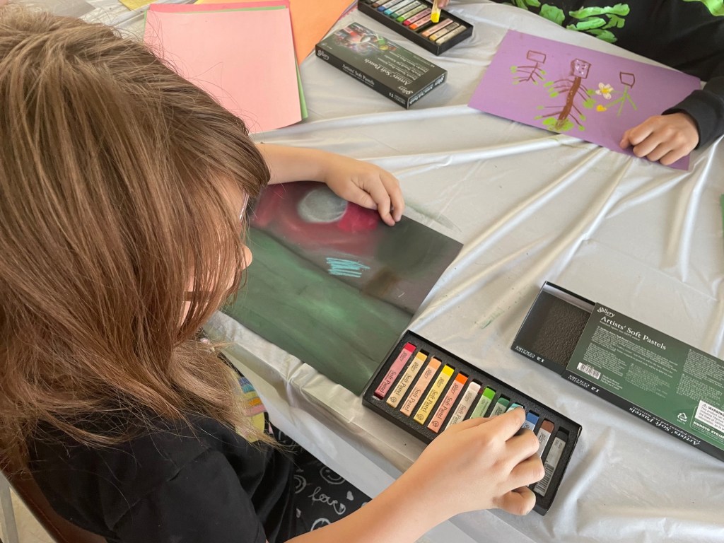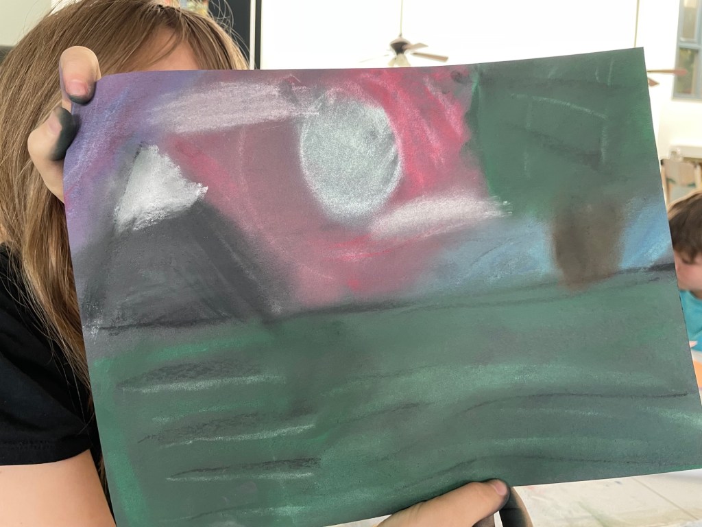 Little Miss and I started taking art classes at the beginning of the month that will last another week and that has been fun. There will be a reception the week after next for the art the children produced in their class and then they will be on display at the library in town (which is also the county library because it is the only library in this tiny county).