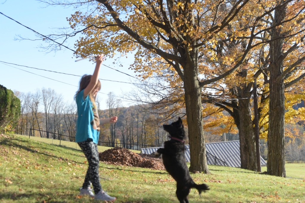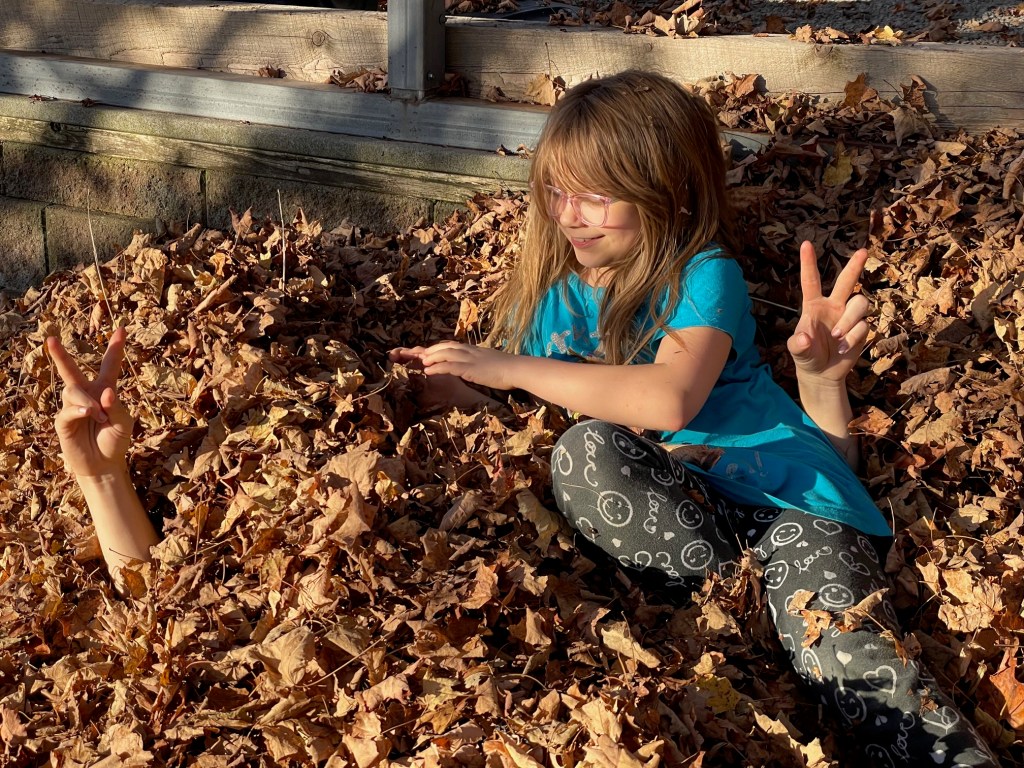 Our leaves changed rather slowly this year and did offer us some brilliant yellows and deep oranges. We still have a few on the trees, but for the most part the autumn winds have knocked them down. Little Miss and The Boy had one leaf-jumping day and then it became too cold. When it did warm up, we didn’t think about going back in the leaves again.