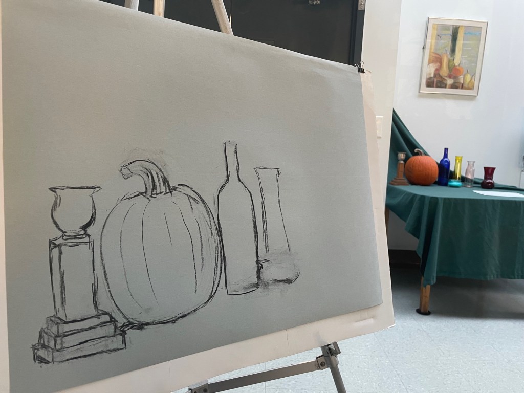 I attended one of the adult art classes and will try to attend the last two. The instructor doesn’t really instruct, though, and I find drawing bottles absolutely dull, but I guess it gives me a bit of time to decompress and relax, away from responsibilities at home.