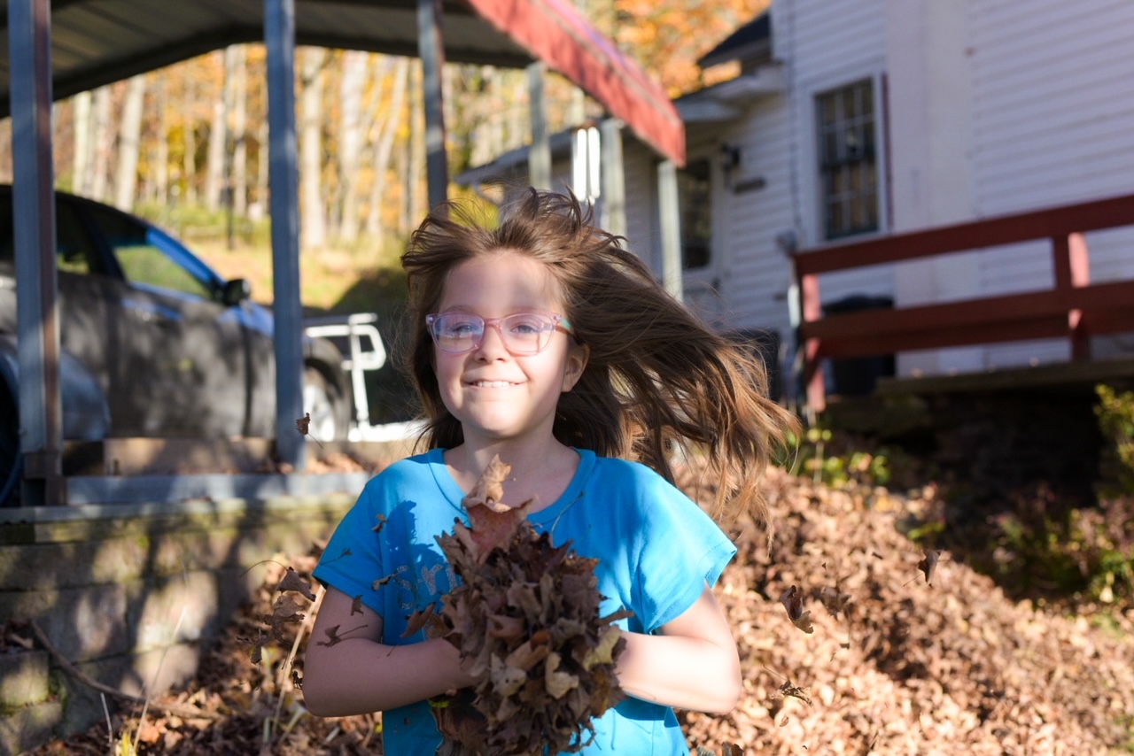 Our leaves changed rather slowly this year and did offer us some brilliant yellows and deep oranges. We still have a few on the trees, but for the most part the autumn winds have knocked them down. Little Miss and The Boy had one leaf-jumping day and then it became too cold. When it did warm up, we didn’t think about going back in the leaves again.