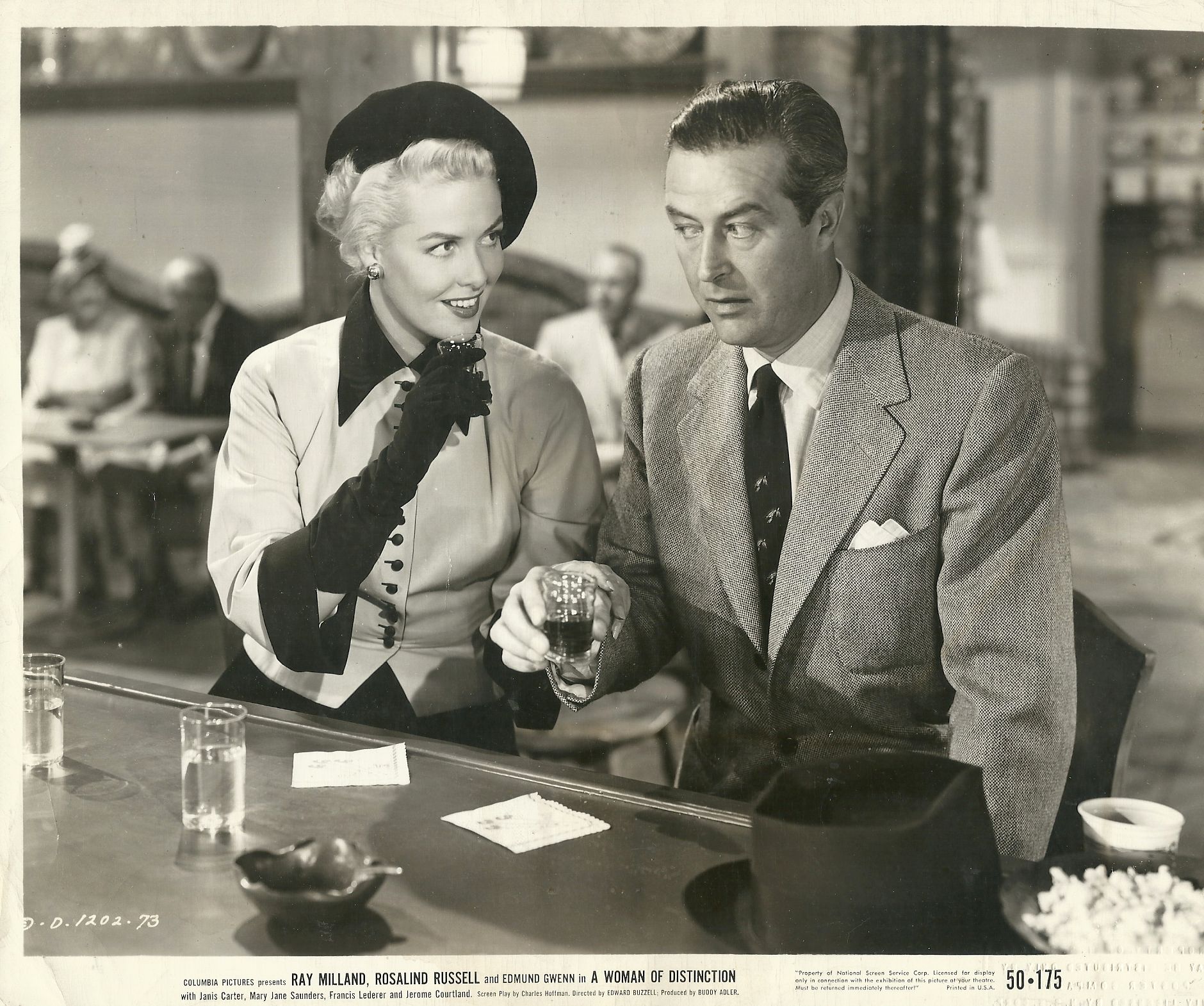 Variety called A Woman of Distinction, “a loosely-tied grabbag of screwball and nonsensical doings about two warring-but-loving pedagogues. Sans much logic, the Rosalind Russell-Ray Milland teamwork is good.”