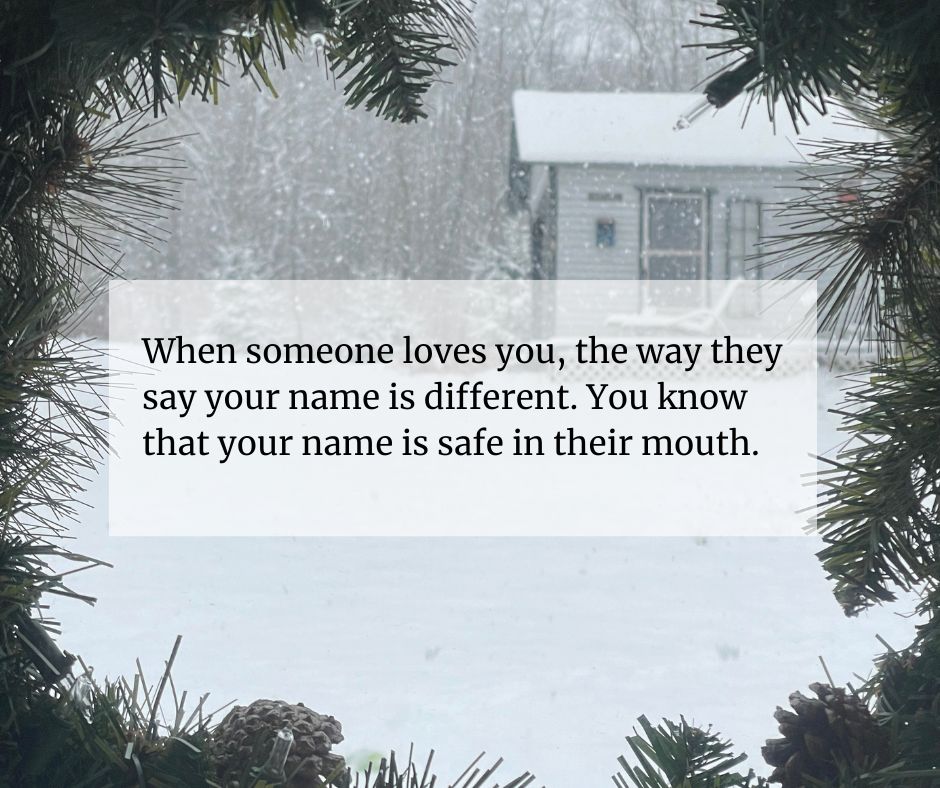 When someone loves you, the way they say your name is different. You know that your name is safe in their mouth.