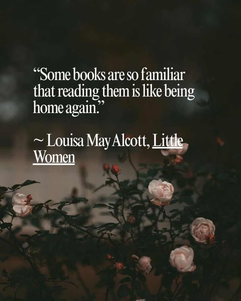“Some books are so familiar that reading them is like being home again.” – Louisa May Alcott, Little Women