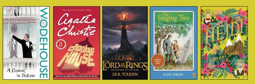 I am reading Crooked House by Agatha Christie and A Damsel in Distress by P.G. Wodehouse.