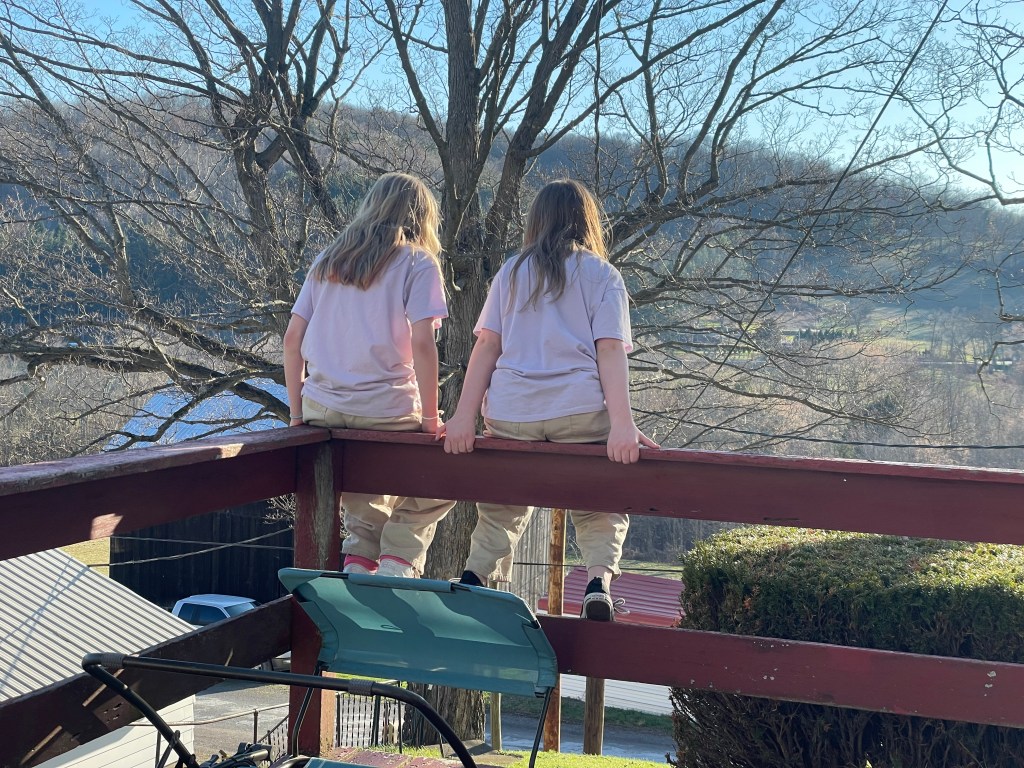 Little Miss had a friend over to visit, and they had fun dressing up in the same outfit since they both have similar-looking glasses now. They also had a lot of fun jumping off the railing of my parents’ deck, and I just hoped they wouldn’t break anything. Luckily, they did not.