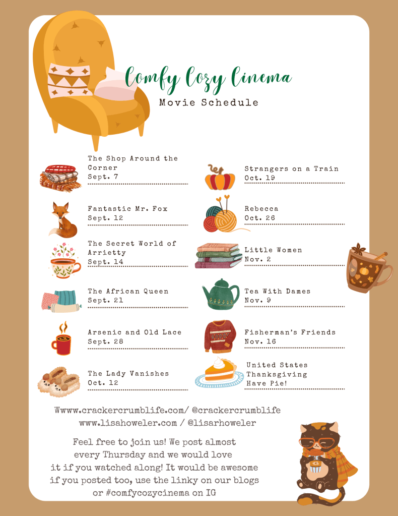 Erin from Still Life, With Cracker Crumbs and I are hosting the Comfy, Cozy Cinema again this year.