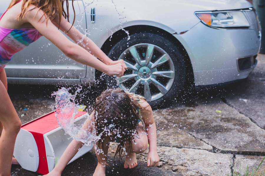 Little Miss and her friend had a water balloon fight on Thursday, even though the temps were a little cool for summer.