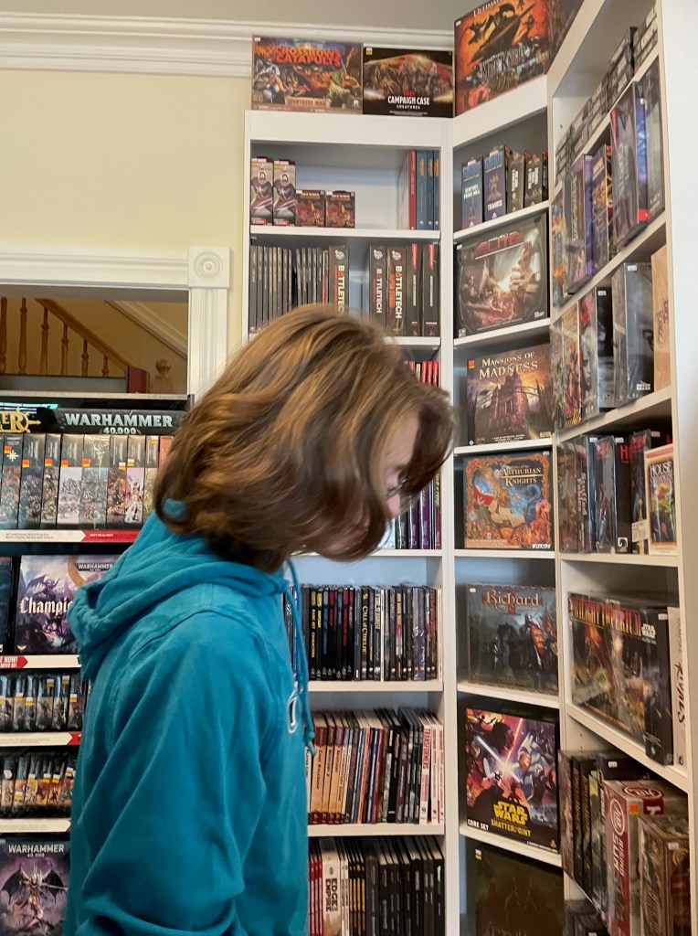 He has really been enjoying painting the models. He doesn’t do the gaming with the models, but he loves figuring out how to paint them to look realistic and, well, just cool. He does play the online game, read the books, and knows all the Warhammer lore.