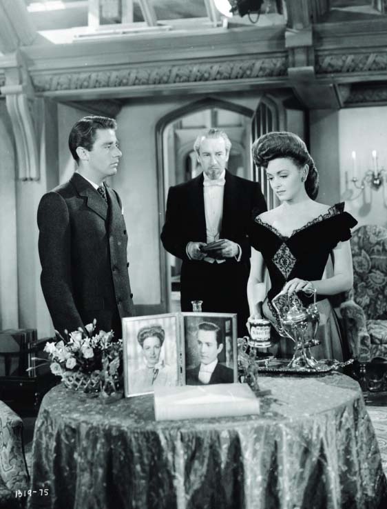Spinning around in the background of the family’s drama is the romance between George-Anne and Duncan Macrae (Richard Carlson), who she originally considered marrying when she thought he was rich. Duncan learned she was a con-artist along with everyone else and was shattered but still ends up chasing her down on the train back to London to tell her he still loves her.