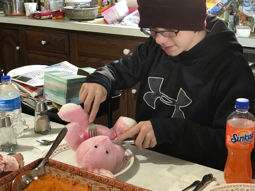 My son decided he would have stuffed rabbit for Easter dinner this year: