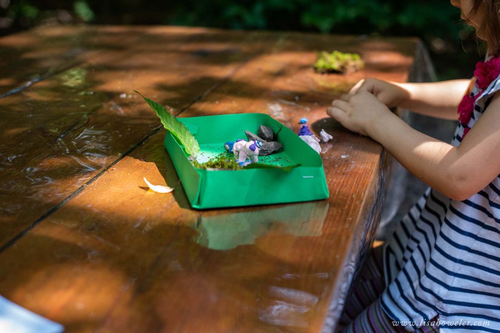 A book was read, the students were let loose to explore some stations in the woods, and then they were offered a chance to build a salamander out of clay and place it in a habitat they made. Little Miss went all out, creating a salamander and her baby. She kept running back to the lady leading the event, asking for more clay, different colors, to create her salamander. All of the other children made a salamander in a few minutes and were done. Not my kid. She was creating a masterpiece. And I thought that was pretty cool. The people running the activity did too and enjoyed taking photos of her creation and her.